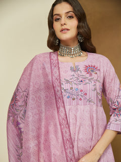 Women's Lavender Cotton Blend Floral Printed Anarkali Kurta Set