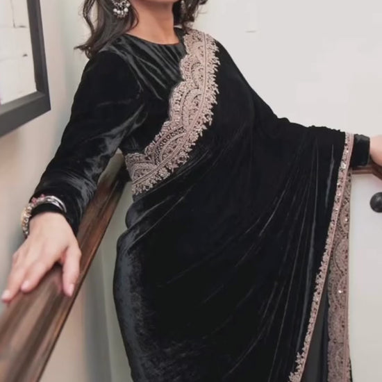 Viscose Velvet Winter Designer Saree with Embroidery & Sequins Work