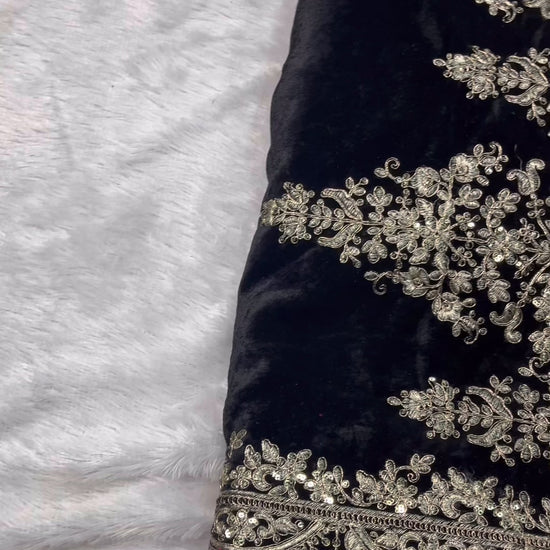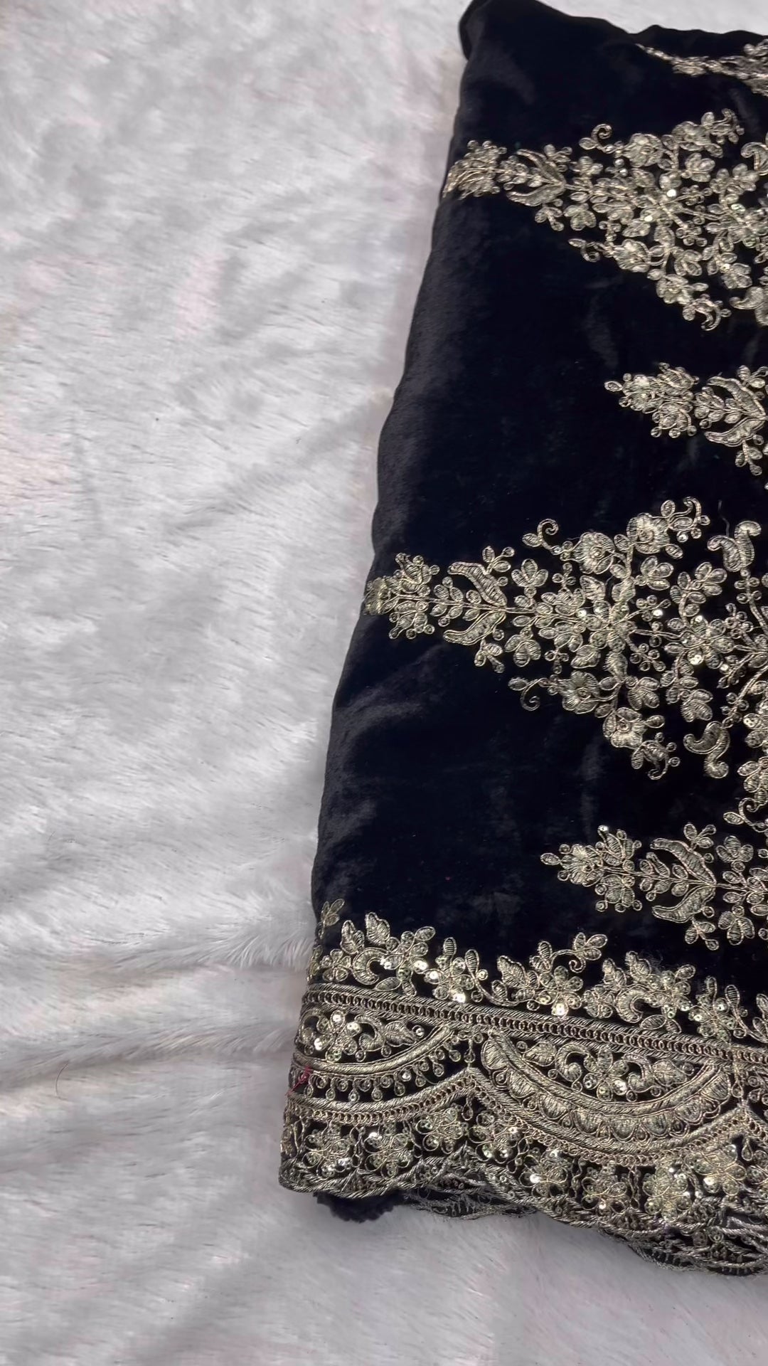Wrap yourself in luxurious winter elegance with this exquisitely crafted viscose velvet saree — a statement piece designed for women who adore premium textures and graceful drape. The plush velvet fabric offers a warm, soft feel, making it perfect for winter weddings, evening events, and festive celebrations. Expertly adorned with intricate 5mm sequins, Jari dori embroidery, and refined detailing, this saree carries a rich, luminous charm that feels both modern and timeless.