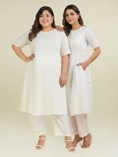 Off White Dobby Pure Cotton Self Design A-line Kurta Pant Set