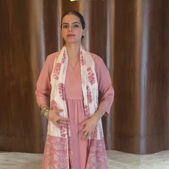 - Elevate your fashion game with the chic and contemporary coral cotton floral printed A-line kurta and bottom. The floral printed kurta features a stylish V-neck design with sleeveless style, two side pockets with gathers on the waist, and button ornamentation exuding sophistication and charm. Complemented with matching narrow pants style it by adding your favorite accessories and a pair of heels to accentuate your style and make a fashion statement wherever you go.